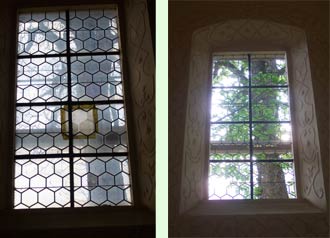 Fenster der Kapelle Traustadt vor (links) und nach (rechts) der Restaurierung.